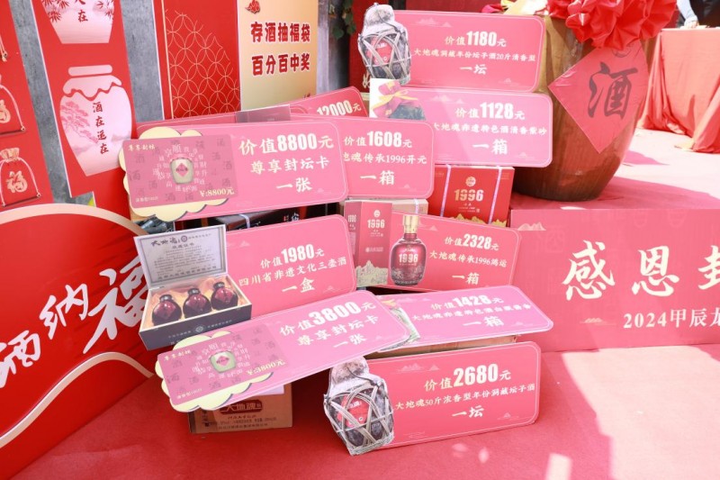 不仅如此,为了回馈一直以来支持川盟酒业集团大地魂的新老客户,川盟酒业集团大地魂在本次封坛仪式上还为到场客户准备了专属大礼包:每一位莅临本次活动的客户不仅能封存一坛饱含自己美好祝福的祝愿酒,还能抽取川盟酒业集团大地魂给予广大客户的祝福大礼包,这其中包含了一系列川盟酒业集团大地魂当红产品,更有价值上万的尊享封坛储值卡以及对应的尊享服务。