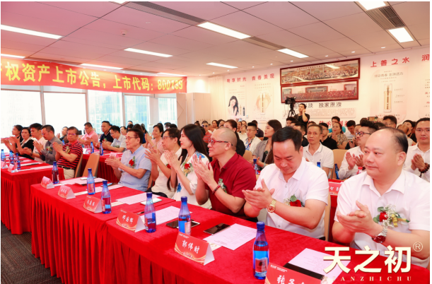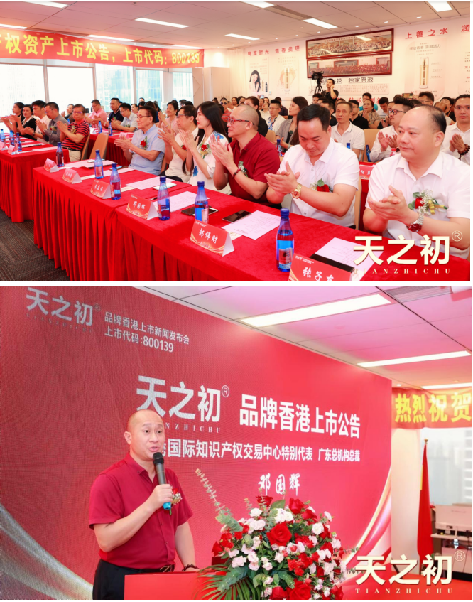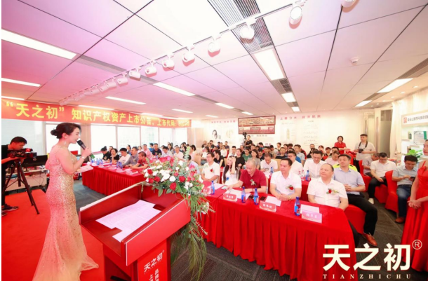 发布会上,天之初品牌创始人朱庭依女士分别致欢迎辞和作天之初品牌的分享;香港国际知识产权交易中心特别代表,广东总机构总裁邓国辉先生为天之初公司宣读上市公告。