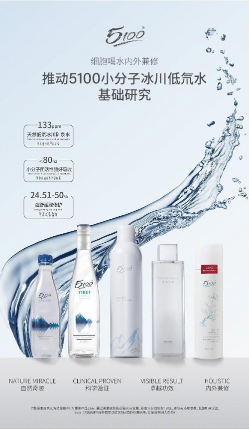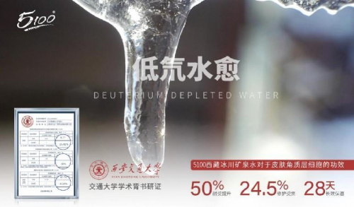 5100极地冰泉秉承“细胞喝水内外兼修”的产品理念,专注于为皮肤提供高效的角质层细胞功效护肤产品。根据5100极地冰泉与西安交通大学合作的研究论文,《冰川低氘水对皮肤长效保湿与舒缓修护的功效》,5100冰川低氘水对皮肤角质层细胞具有显著的舒缓和修护效果。