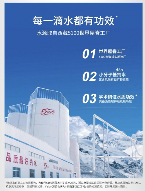 5100西藏冰川矿泉水除了长期饮用对优化人体健康水环境有着较高的健康价值以外对于皮肤角质层细胞也有些显著功效。