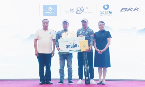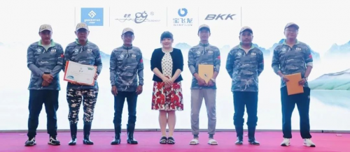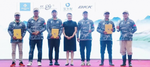中国钓鱼运动协会市场及产业委员会主任马英惠为亚军队颁奖