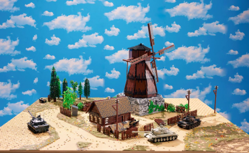 在还原马利诺夫卡地图的过程中,负责场景搭建的钱永杰老师(ID:G.S)面临了巨大的挑战。他表示,大风车是整个沙盘中最复杂的建筑,也是最具挑战性的部分。为了实现与游戏内地图高度相似的视觉效果,他们不仅要还原外形,还需要让风车的扇叶能够旋转。通过隐藏在风车内部的复杂结构,他们最终成功克服了乐高积木常规限制,呈现出令人惊叹的效果。