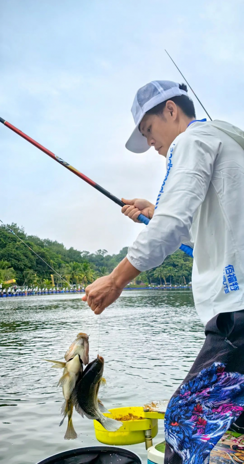 本次2023年全国钓鱼明星赛(海南万宁游钓赛)的比赛项目为3.6_4.5米手竿钓混合鱼总重量赛。比赛一天两场,每场比赛时长为2.5小时。万宁兴隆华侨旅游经济区小洋侨旅游度假区高密度投放了10万斤罗非鱼。随着裁判长发令枪响,赛场上疯狂上鱼的画面劲爆全场,157名钓鱼达人第一场比赛(2.5小时)共钓获40000余斤,每人平均钓获254.8斤,每人平均每分钟钓获1.7斤,让参赛队员又一次体验了全国钓鱼明星赛的速度与激情。