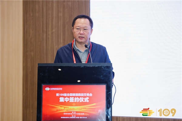 大会伊始,全国糖酒会组委会副主任、秘书长、中粮会展董事长杨成刚代表全国糖酒会组委会对各位来宾的莅临表示热烈的欢迎。他介绍到,本届糖酒会紧扣“交易为王”的主题,举办了本次集中签约仪式。在今天的活动上,糖酒会参展团和参展企业,将向与会代表集中进行产业政策宣讲和特色产品推介,便于采购商代表集中签约,展示他们在本届糖酒会期间取得的丰硕成果。同时,多种地方特色产品和新品在本次活动中亮相发布,希望各位采购商多多关注。