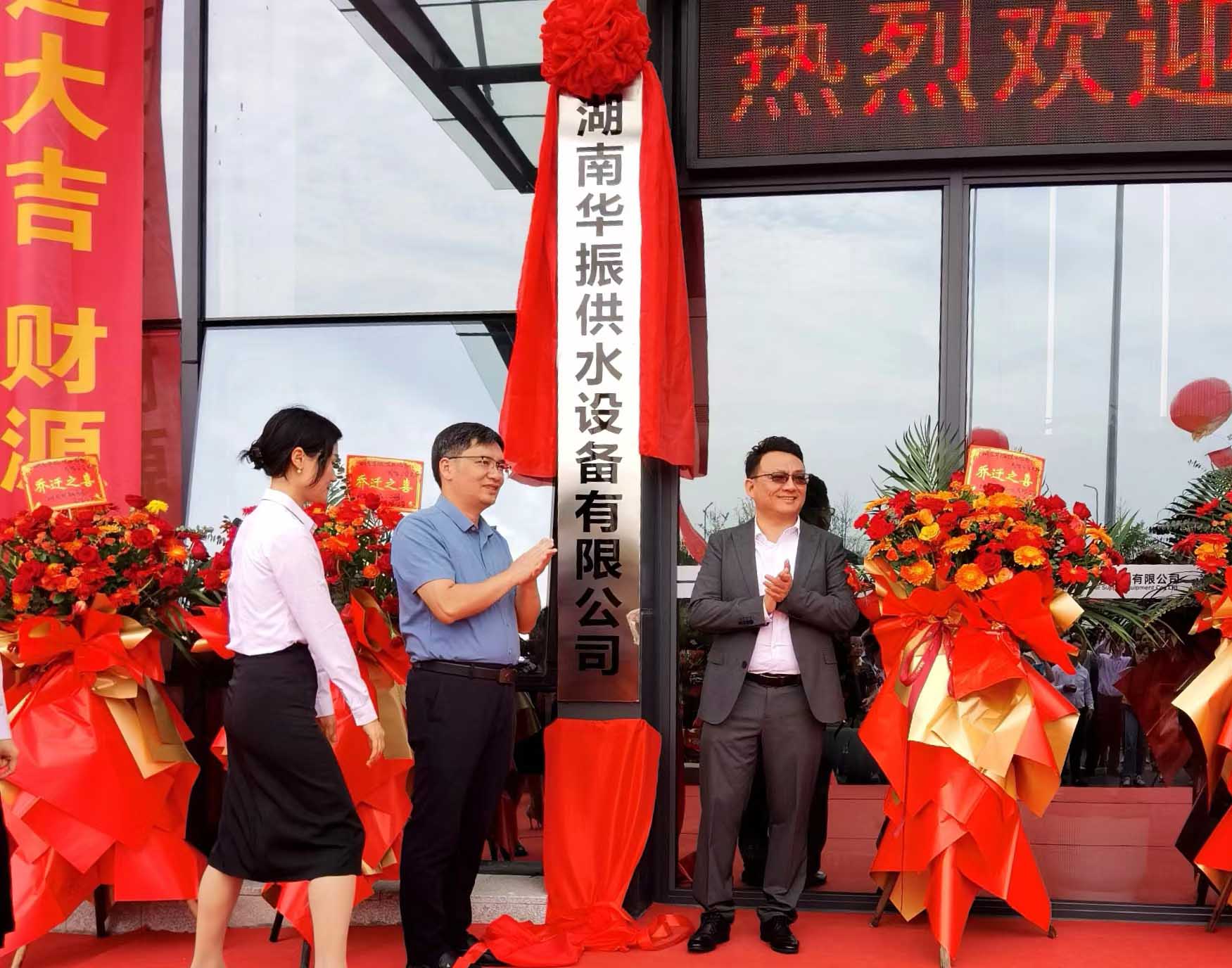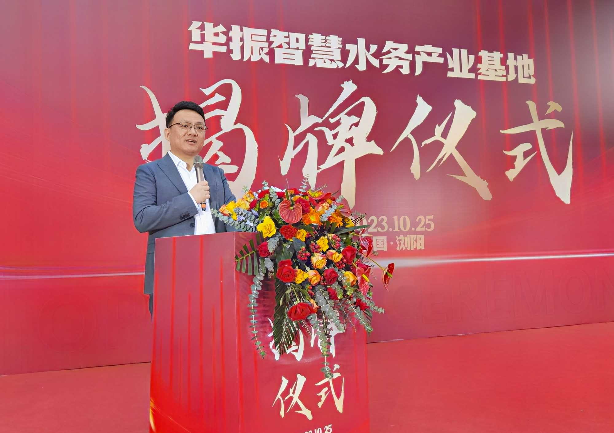 10月25日,湖南华振供水设备有限公司·智慧水务产业新基地揭牌仪式暨投产庆典在浏阳总部隆重举行。出席本次揭牌仪式的有湖南省教育后勤协会会长、原湖南省教育厅副厅长杨定忠,长沙市安化商会终身名誉会长、原省政府接待处处长李蒲初,浏阳经开区党工委委员管委会副主任陈训武,湖南省供水协会会长、中南科技董事长郑恒,中南水务工程有限公司总经理肖建伟,浏阳市永安镇党委书记孙谦,浏阳市永安镇镇长祝易滔,中南环保设备有限公司总经理邹开展,湖南省城乡建设协会供水分会秘书长何全,湖南师范大学后勤处处长黄志勇、研究生院院长赵亮、后勤处副处长谢栋才,湖南师范大学湖南省教育后勤协会副会长夏志勇,浏阳市永安镇礼耕村书记李建志,湖南华振供水设备有限公司董事长胡毅、董事朱靖、姚智勇以及经开区管委会办公室、产业发展局、经济合作局、开发建设局、产业投资促进中心、经开区水务公司、永安镇派出所等相关负责人,华振战略合作伙伴、代理商、嘉宾、供应商朋友,以及湖南卫视、新闻界记者等近300人。华振供水副总经理胡习威主持本次揭牌仪式。