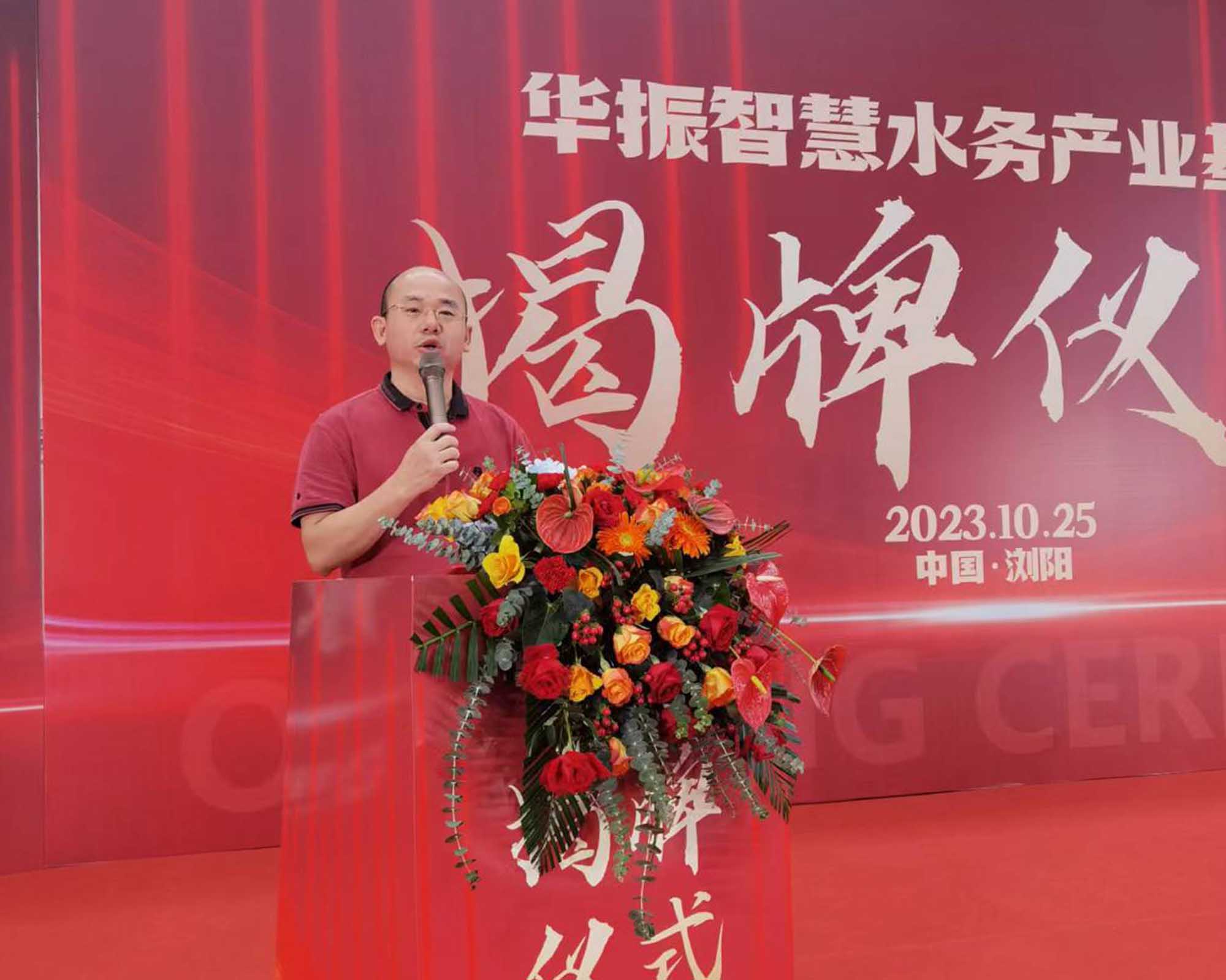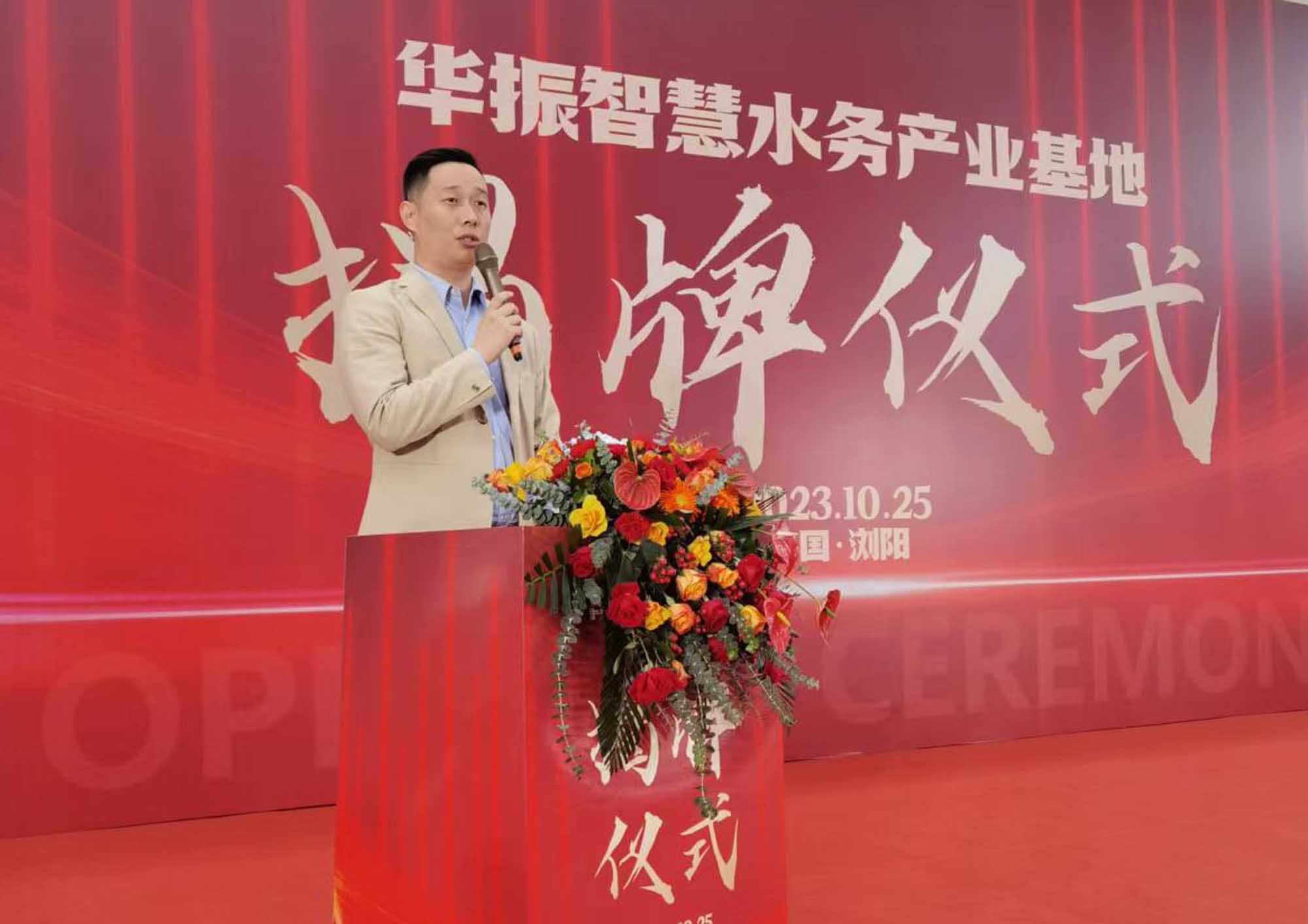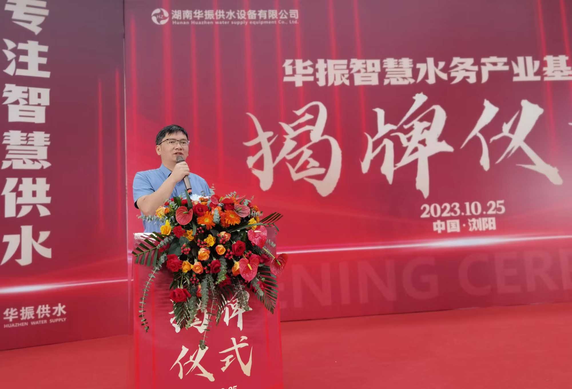 湖南华振供水副总经理胡习威主持揭牌仪式,对华振供水进行相关介绍