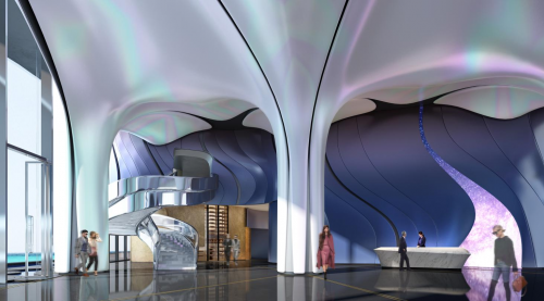 “游艇”行政酒廊仿佛深圳作为经济特区破浪而行的剪影。以“星辰”为设计主题的酒吧如同一场探索无垠宇宙的星际穿越之旅,视觉化的星辰彼此交映,连通了人与宇宙,在美好的生活空间中闪耀欢聚的耀眼光芒。