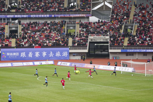 11月12日下午3:00,由陕旅集团联合承办、陕体集团协办的“咸阳杯·美洲队中国行”国际足球邀请赛在咸阳奥体中心开赛。两支美洲劲旅:巴拿马国家队与乌拉圭国青队龙争虎斗,热情、技艺、文化激情碰撞,最终,巴拿马国家队1:0战胜乌拉圭国青队。2万多名球迷现场欣赏了这场足球盛宴,比赛圆满落幕。