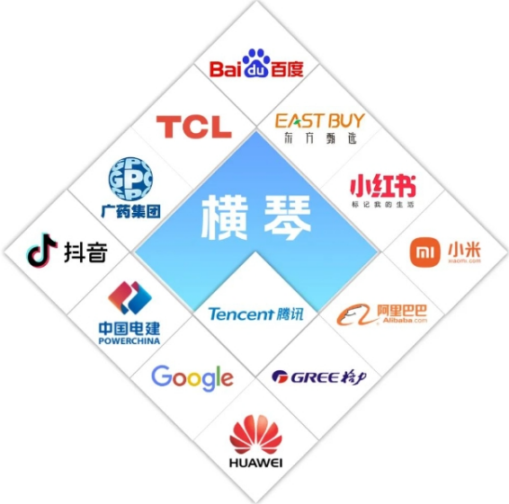 截止目前,横琴粤澳深度合作区实有企业55375户,其中澳资企业5763户,较合作区挂牌前增长23.98%。其中不乏谷歌、华为、腾讯等知名头部企业,如下图所示: