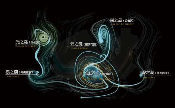 高线公园式的立体、半开放的活力岛屿景观设计;