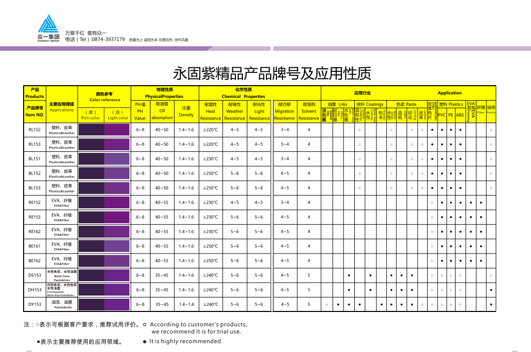公司产品主要有:永固紫、中高色素炭黑系列产品两大类别。