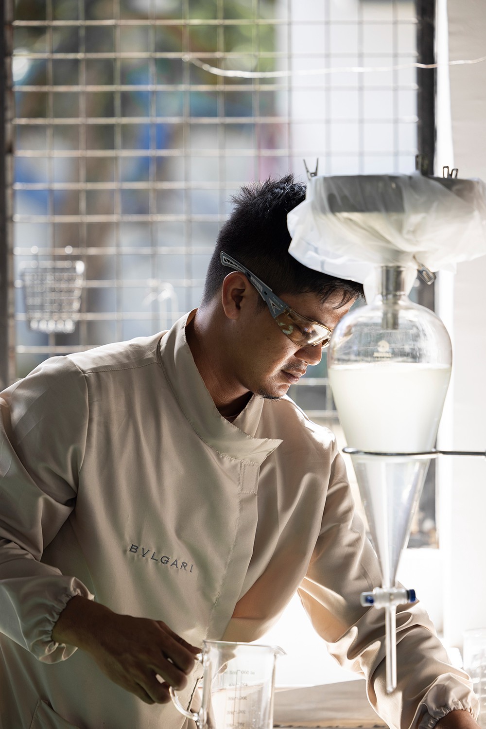 菲律宾每年生产超过300公吨的榄香脂,过去都需要被运往海外进行精油蒸馏。宝格丽及合作伙伴设立的新蒸馏厂创设了本地加工蒸馏的配套设施,减少了海外运输的成本及损耗,同时促进了当地经济的长远稳定发展。