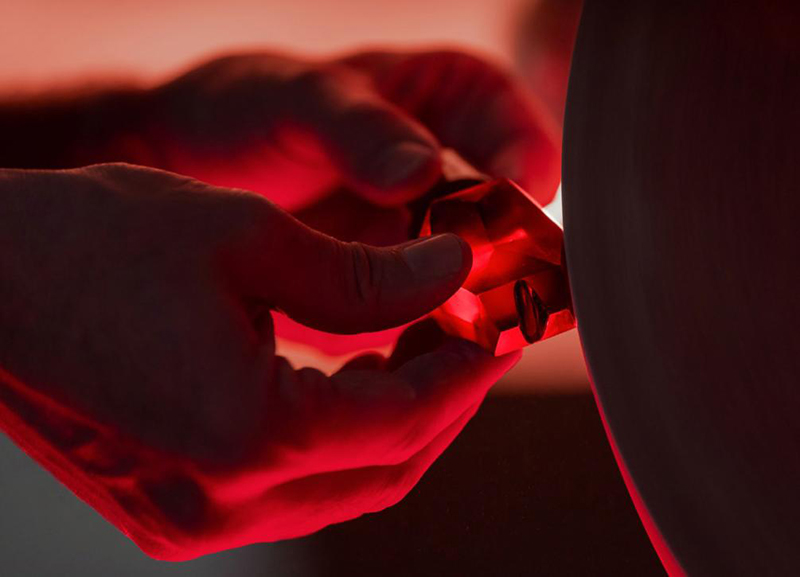 与巴卡拉的所有作品一样,这件艺术珍品的诞生过程也是融蕴技艺的宝库,是结合水、土、气、火四大元素与人类精湛技艺的迷人炼金术结晶。在火焰舞动中,玻璃制作大师手工将熔融材料塑造成型。这些工匠拥有独特的技术诀窍,将世代相传 260 年的工艺传承至今。他们先雕出这款传奇瓶身的底座,再依次雕刻出 88 个风格各异的刻面、瓶底和瓶塞,一只可爱的乌龟终于呈现全貌。以极致的严谨完成最重要的抛光步骤,使水晶绽放出全部的璀璨光芒。