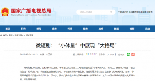 2023年,微短剧呈现蓬勃发展之势。艾媒咨询数据显示,2023年中国网络微短剧市场规模为373.9亿元,同比增长267.65%。微短剧的高速发展也吸引了政府机构、国资企业、出版集团、广电媒体等“正规军”入场,精品化趋势愈加明显。