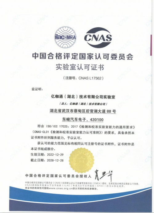 近日,亿咖通科技(纳斯达克股票代码:ECX)实验室顺利通过中国合格评定国家认可委员会(CNAS)的年度监督审核,在管理、技术和检测能力方面充分得到国内外互通认可,能够为汽车智能化产品提供从研发到量产交付的全周期测试与质量保障,充分满足全球客户的严苛质量需求。