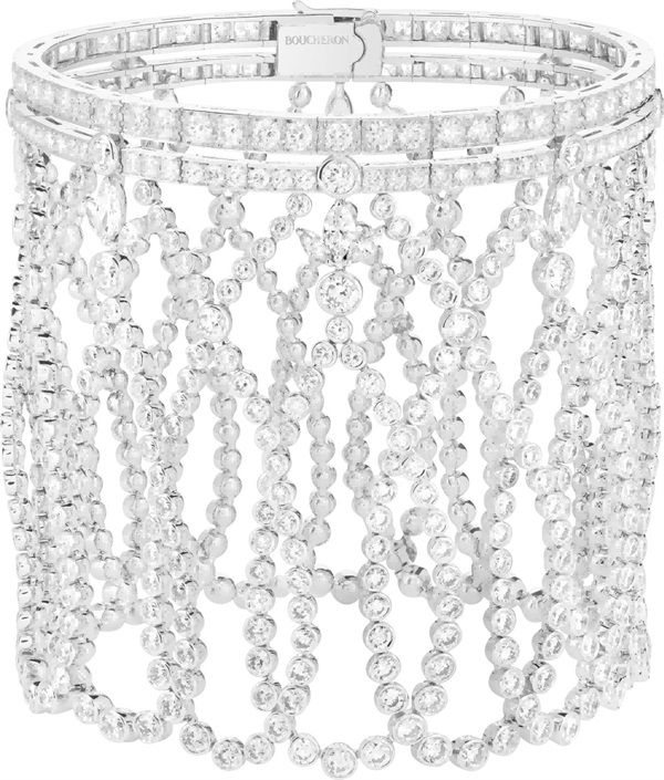 为此,品牌创意总监Claire Choisne 从盛典礼服中撷取灵感,对其进行大胆而前所未有的风格诠释。盛典礼服自有的矛盾性深深吸引着这位创意总监。乍一看,礼服给人一种正式、刻板的印象。但如果逐件细看,便会留意到一系列精美绝伦的装饰。在设计本系列的24件高级珠宝作品时,Boucheron宝诗龙沿用了此种理念。Claire Choisne继续说道:“我决定对这些象征权力的元素进行解构和重新演绎,确保其适用于高级珠宝设计。这一系列就如同一个珍贵的百宝箱,其中各款作品采用不同设计元素,提供多种佩戴方式,令佩戴者可以自由打造独特型格。”