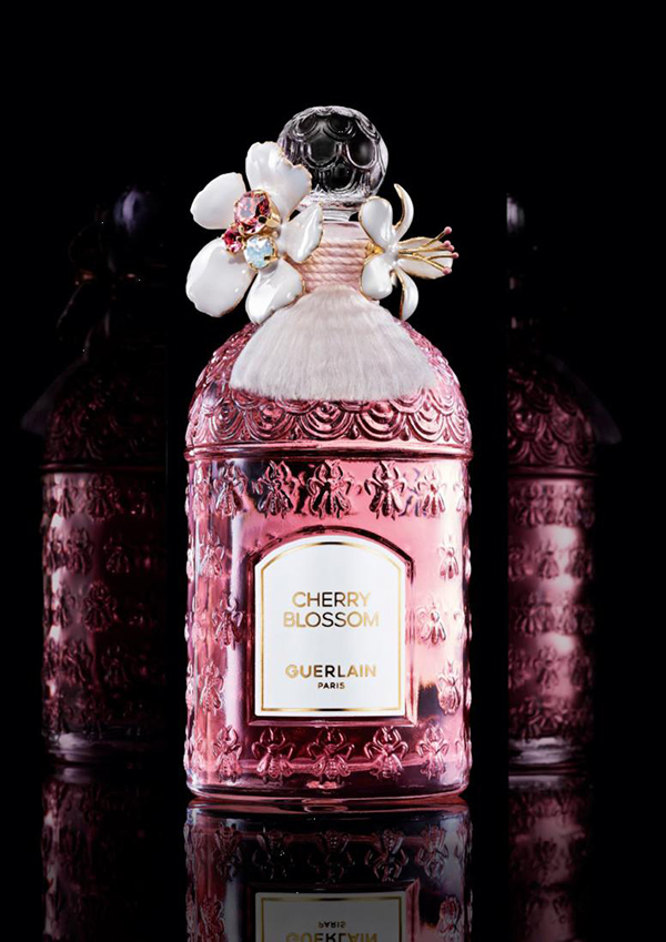 娇兰全新繁樱大道淡香水于瓶颈优雅绕饰一枚樱花戒指,两朵娇花耀现绚丽的珍珠母贝光泽,花瓣翩然舒展,绰约盛放。此时此刻,香水华丽化身为奢美珠宝,而珠宝更蜕变成为艺术藏品。香水瓶上的饰品,也首次成为萦绕指间的臻美珠宝。