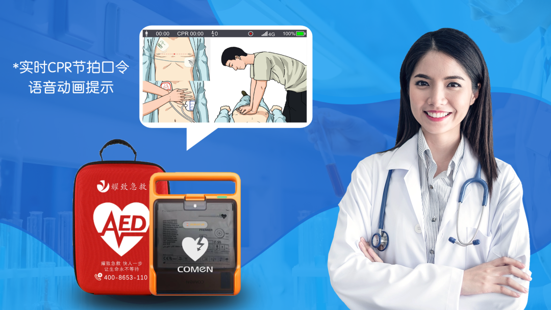 作为科曼AED全国总代,耀致急救聚焦国内AED普及的先锋,以自身专业产品方案和丰富行业经验助力AED在各类场景的普及,并从采购、培训、安装、维护等多方面入手,以一站式的服务模式,赋能院前急救,为我国院前医疗急救事业注入了新的活力,致力于推动国产AED全面普及和快速发展。