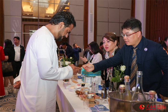 据介绍,此次推介会是近年来云南省企业规模最大的一次“出海”活动。活动现场专门设置“彩云市集”特色展区,有65家滇企携带100余款云南优势产品进行展示,展品涵盖鲜切花、咖啡、茶叶等优质农产品,化妆品、中药材等大健康产品,以及预制菜、鲜花饼等特色食品和斑铜等非遗工艺品,展现云南深厚的文化和资源底蕴,吸引参会嘉宾互动体验,切身感受“云品”魅力。推介会当天共促成20余项初步合作意向,多家中阿企业现场签约。