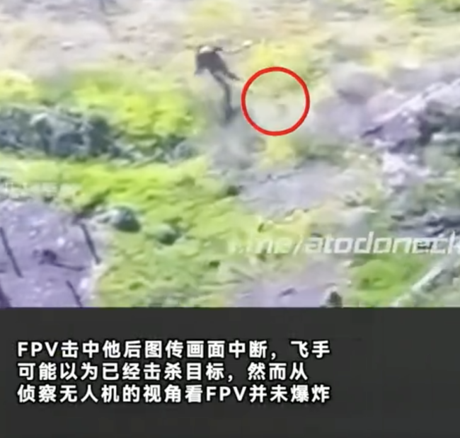 乌军镜头下幸运的俄军士兵,人生还真放过了这一次!乌军镜头下幸运的俄军士兵,FPV撞身上居然没有引爆 !