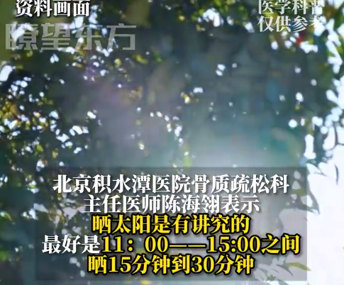 北京积水潭医院骨质疏松科主任医师表示,晒太阳是有讲究的。晒的时候不能隔着玻璃,注意千万不要涂防晒霜。