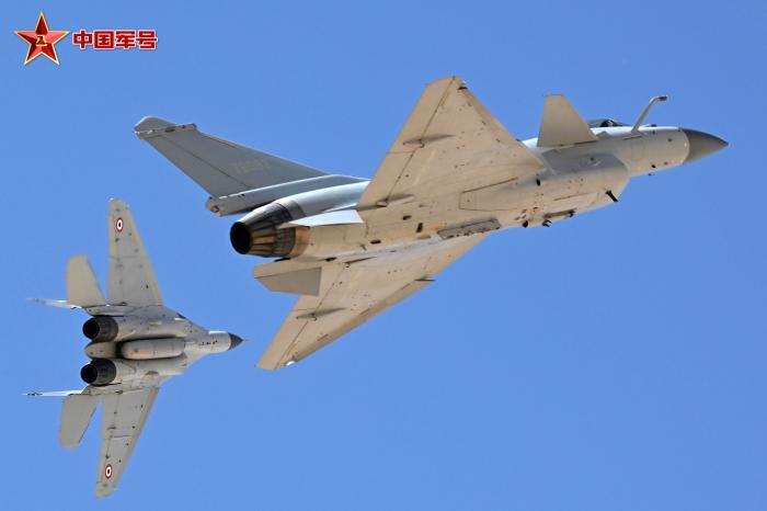 中国空军歼-10C与埃及米格-29战机协同训练。图/“中国军号”微信公众号