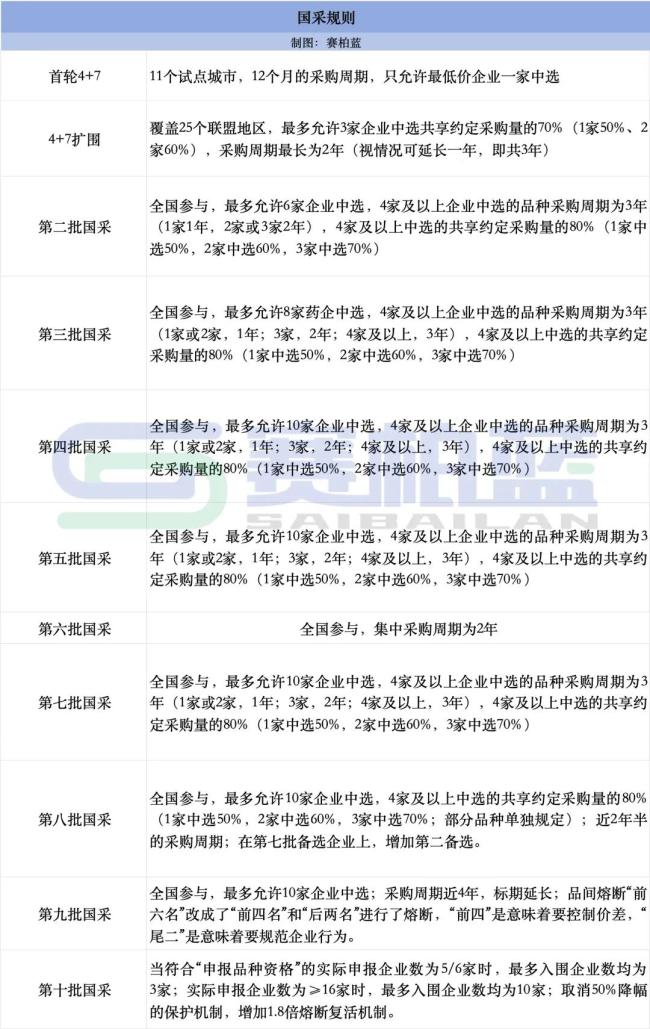 赛柏蓝梳理发现,近五批国采官宣信息填报时间与上一批次国采落地时间最快间隔约3个月,最慢在一年左右,如果按此推算,上半年进行的新批次国采可能会在6月进行信息填报。
