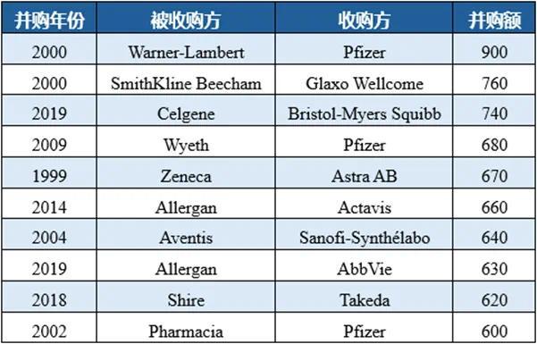 制药行业十大并购案(亿美元)
