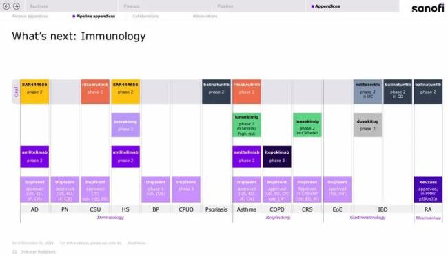 赛诺菲免疫管线布局(来源:2024年财报)