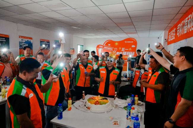 除了为司机师傅发放爱心能量包,部分司机福利站还为司机准备爱心午餐、有奖互动游戏,让司机师傅忙碌一上午后,可以顺道吃饭并放松一下,抖擞精神继续接单赚钱。部分福利站还为五一期间过生日的司机师傅准备生日蛋糕。