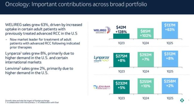 默沙东其他的肿瘤产品也有不错表现。全球首创HIF-2α抑制剂Welireg取得1.37亿美元的销售额,同比增长62%。合作开发产品Lynparza(奥拉帕利)、Lenvima(仑伐替尼)、Reblozyl(罗特西普)则分别为默沙东带来了3.21、2.58、1.19亿美元的收入。