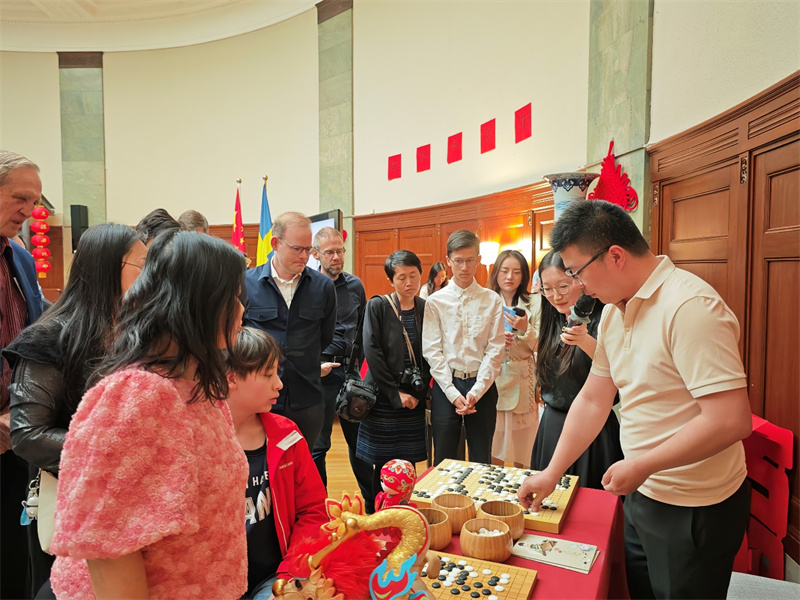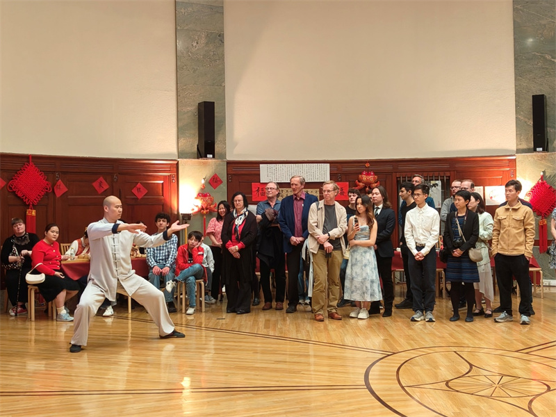 活动现场,还进行了琴、棋、书、画和中国舞蹈等中华文化元素的集中展示,包括古筝演奏、中国象棋和围棋展示、中国书法展示、工笔画和写意画展示、敦煌舞、新疆舞、太极拳和八段锦等精彩节目,现场掌声雷动,在太极拳和八段锦展示过程中,来宾们跟随展示者做动作,体会中国道家刚柔相济、阴阳相生的哲学思想。
