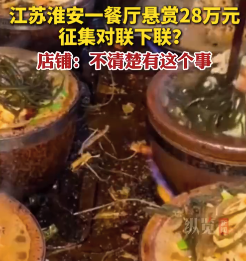 餐厅回应网传悬赏28万征集下联:不清楚有这事