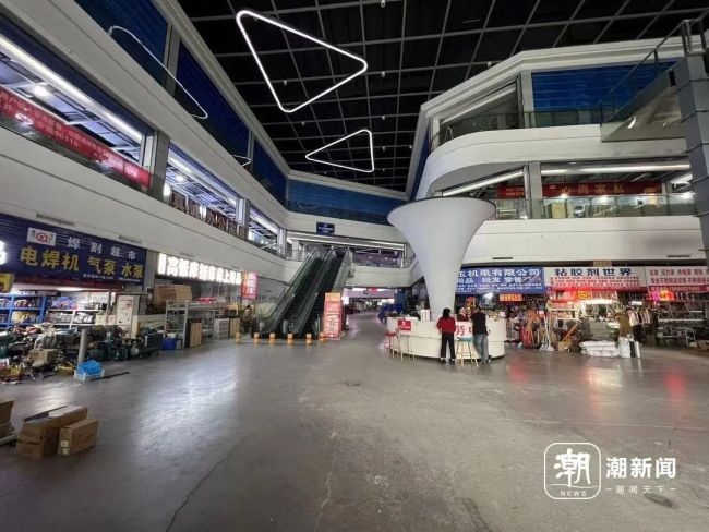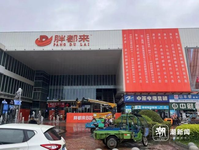 商场B区还在装修中,共有三层楼,聚集了一些销售五金、厨具和办公家具的门店。一位五金店老板透露,他在这里开店已有五六年,以前这个地方叫乐淘城,现在改名为“胖都来”。