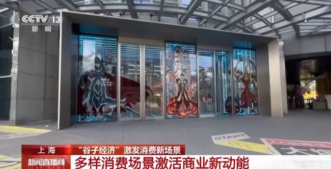 在南京路上的另一家二次元主题商场,迎来客流高峰,身上挂满徽章和玩偶的年轻人,穿梭于各层主题店铺。