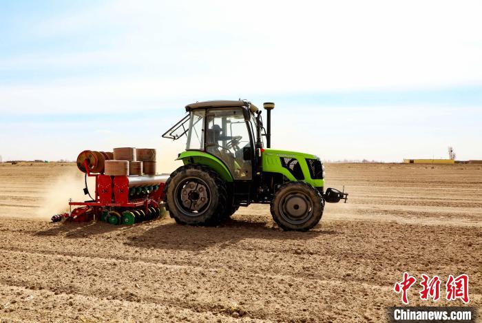 民勤县高标准农田的耕种现场,农机轰鸣中呈现出一派井然有序的现代化农耕图景。(资料图)马爱彬 摄