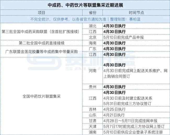 5月将至,全国中成药集采、广东15省金莲花胶囊等中成药联盟集采、全国中药饮片联盟集采落地进展密集更新。