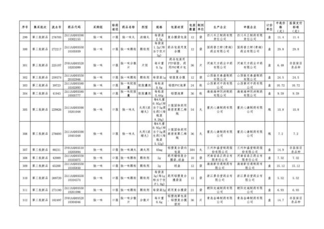 附:全国中成药采购联盟中选企业供应清单(仅包括313个第三批新品品规)