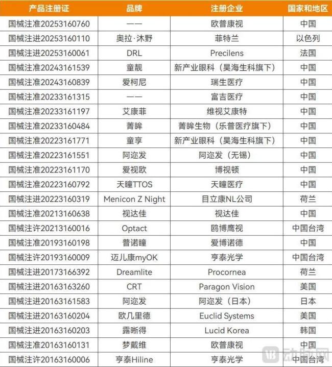 近几年里,角膜塑形镜品牌如雨后春笋般涌现,企业也从曾经的少数几家发展到如今的20多家,市场竞争愈发激烈。截至目前,国内已获批的角膜塑形镜达24款,仅2025年前4个月就有3款产品获批。