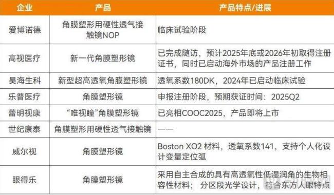 与此同时,仍有爱博诺德、高视医疗、昊海生科、乐普医疗、蕾明视康、世纪康泰、威尔视、眼得乐等企业的角膜塑形镜新产品处于研发中,产品数量还将进一步增长。