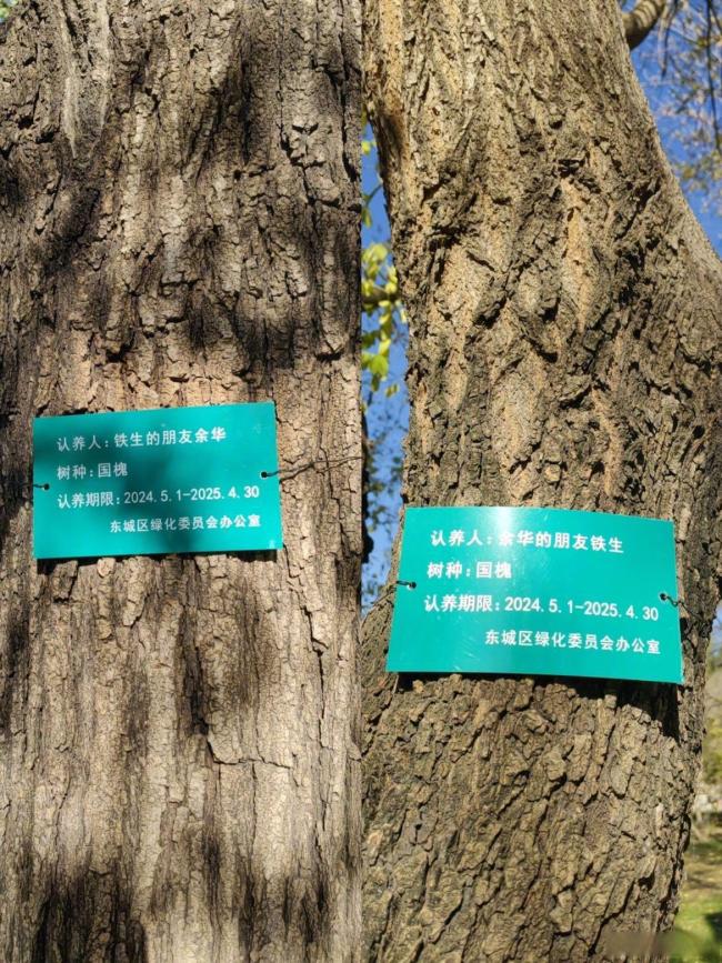 自从这两棵国槐树成为网红打卡点后,在导航地图软件上搜索“铁生的朋友余华认养的树”就能直接找到它们的位置。工作人员表示,市民在认养树木时可以自定义吊牌上的名字,只要不违背公序良俗即可。如果还有市民想用“余华和铁生”的名字认养树木,工作人员会建议尽量实名认养。