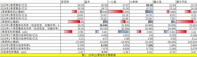根据上表数据,2025年一季度六大民营连锁药店营收表现分化。