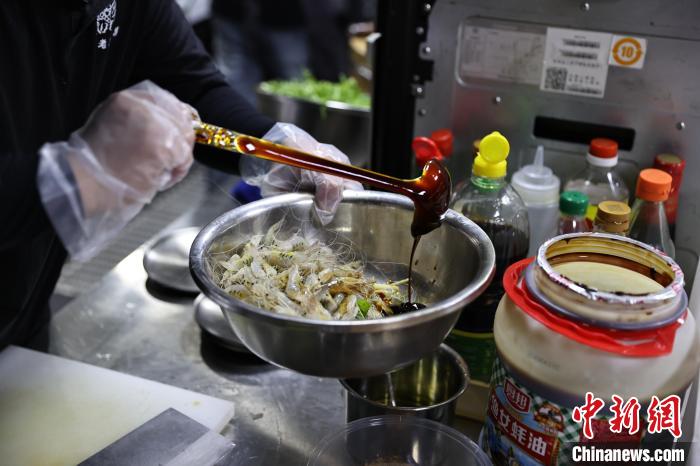 图为孙永虎在备菜。中新社记者 于海洋 摄