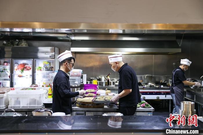 图为孙永虎(右)在备菜中。中新社记者 于海洋 摄