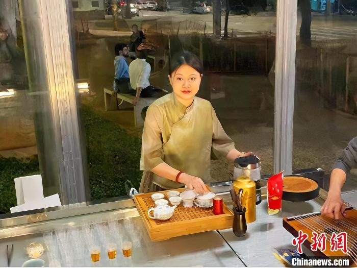现场的展览视频中,元代钱选绘制的《品茶图》展现以茶会友的景象。现场,米纳斯吉拉斯联邦大学孔院教师设茶道,奏古琴,为来宾奉上青砖茶、宜红茶等来自“万里茶道之根”湖北的香茗。