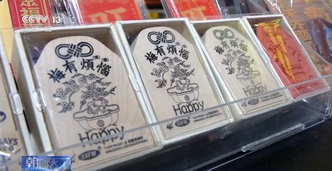 而在上海淮海路的一家杂货商店,高饱和度颜色的装修风格让人眼前一亮,店铺内“梅有烦恼”挂件、“你很行”标牌等商品和个性标语也不断吸引着年轻人前来驻足打卡。