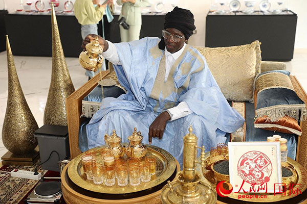 一名摩洛哥茶艺师在表演摩洛哥茶艺。人民网 舒艾卜摄