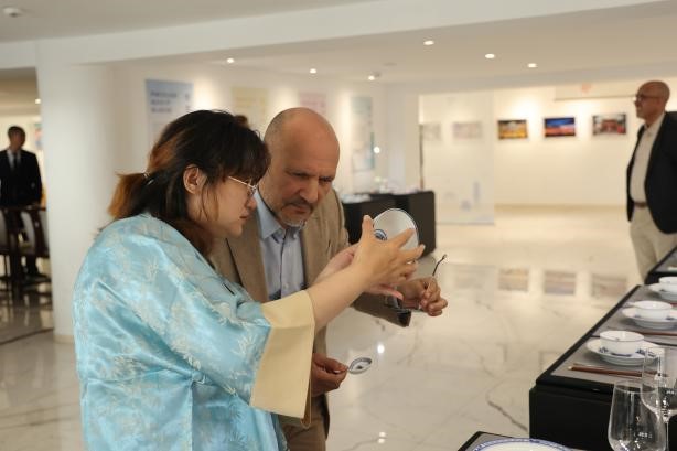 摩洛哥民众在观察中国瓷器。拉巴特中国文化中心供图