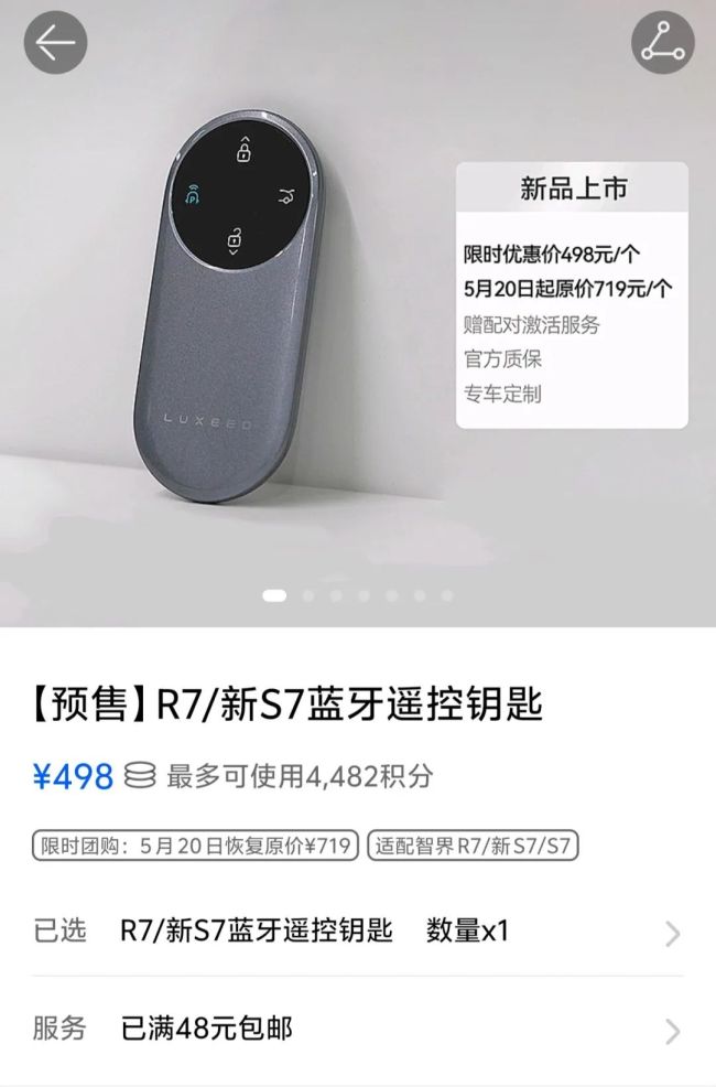智界不配蓝牙车钥匙 单买719元一把 车主吐槽“双标”行为!鸿蒙智行App最近上线了智界车型的蓝牙遥控钥匙售卖链接,原价719元,限时团购价498元。尽管有优惠,但这一举措仍引发大量智界车主不满。他们认为,鸿蒙智行旗下其他品牌车型均标配蓝牙遥控钥匙,甚至与智界R7同根同源的奇瑞星纪元ET也有标配,而智界车主却要单独购买,存在“双标”现象。