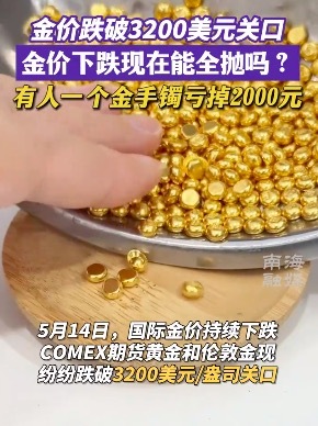 5月14日,国际金价持续下跌,COMEX期货黄金和伦敦金现纷纷跌破3200美元/盎司关口。COMEX黄金跌2.07%报3180.7美元/盎司,一日跌去74美元。伦敦金现跌2.24%报3176.58美元/盎司。
